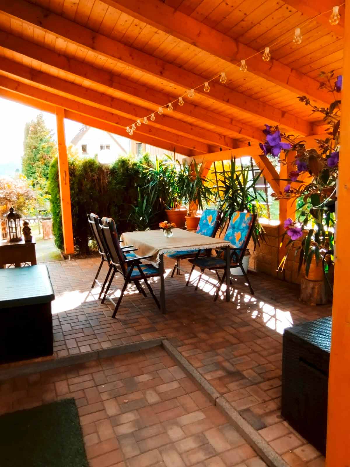 Für beide Ferienwohnungen steht Ihnen ein gemeinsamer Außenbereich mit gemütlicher überdachte Sitzecke, Grill, Wiese mit Liegestühlen und Picknickplatz und jeder Menge "Grün" zur Verfügung. Durch die ruhige Lage werden Sie sich einfach wohlfühlen.