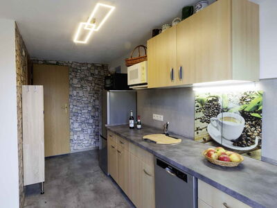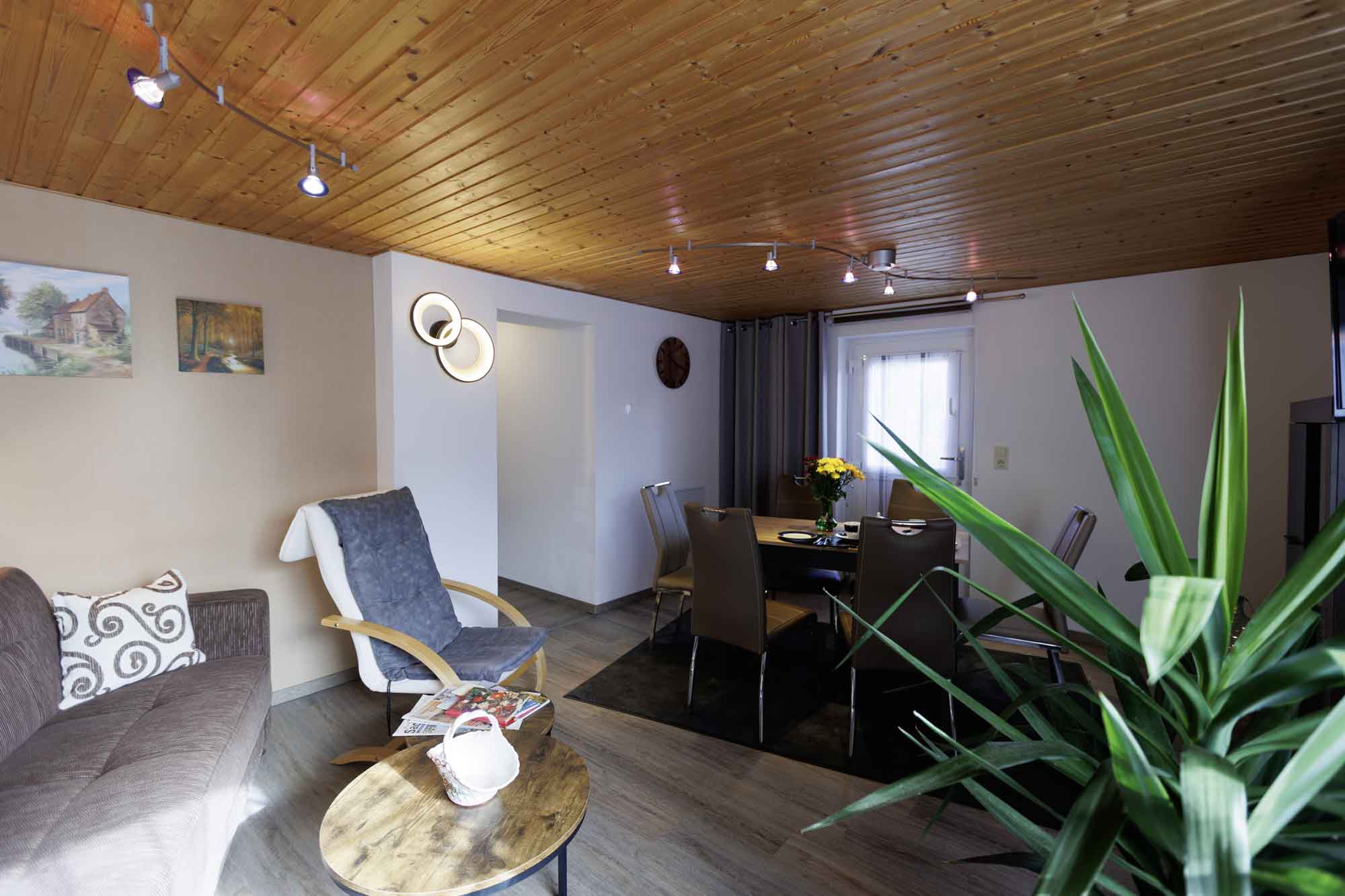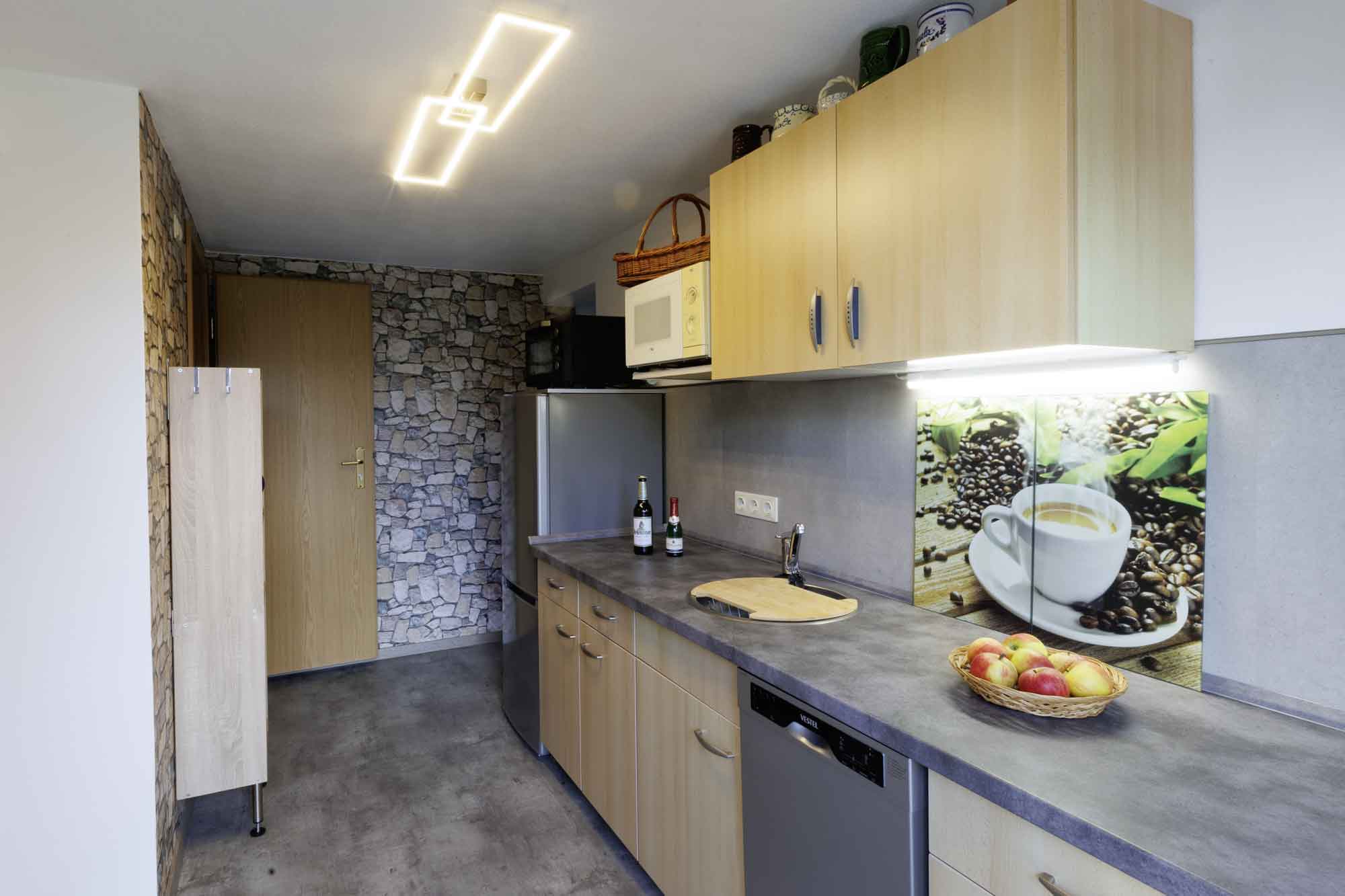 Unsere Ferienwohung im Erdgeschoss des Hauses mit einer Größe von ca. 45 m2 verfügt über ein gemütliches großes Wohnzimmer, ein Schlafzimmer mit Doppelbett, separates WC, Bad mit Dusche/Waschbecken und eine voll ausgestattete Küche mit Induktions-Kochfeld, Geschirrspüler, Mikrowelle, Kaffeemaschine u. v. m. Sie bekommen von uns Bettwäsche sowie Hand- und Geschirrtücher gestellt.