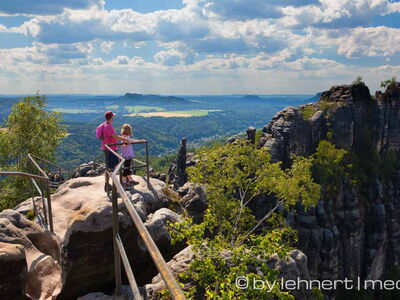 Von hier aus lassen sich einige der markantesten Tafelberge bequem erwandern – darunter der Kleinhennersdorfer Stein, Papststein, Gohrisch, Pfaffenstein und Kohlbornstein. Die imposante Festung Königstein liegt ganz in der Nähe, ebenso wie der majestätische Lilienstein auf der anderen Elbseite.